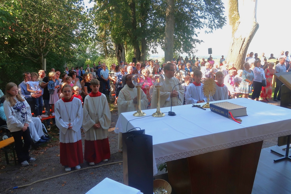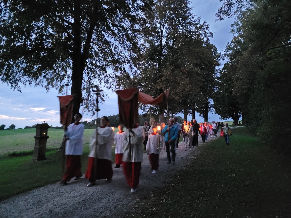 Als dann um 19 Uhr die Bergkirchl-Glocke zum letzten Mal erklang, endeten nach einer kurzen Abschlussandacht die Feierlichkeiten auf dem Berg mit einer Vesper und vielen priesterlichen Dankesworten an alle, die am Gelingen des Festes beteiligt waren. In einer Lichterprozession begleiteten die Gläubigen das Allerheiligste vom Axtheid-Berg hinunter in die Pfarrkirche St. Ägidius, wo Pfarrer Madanu den Schlusssegen erteilte.
