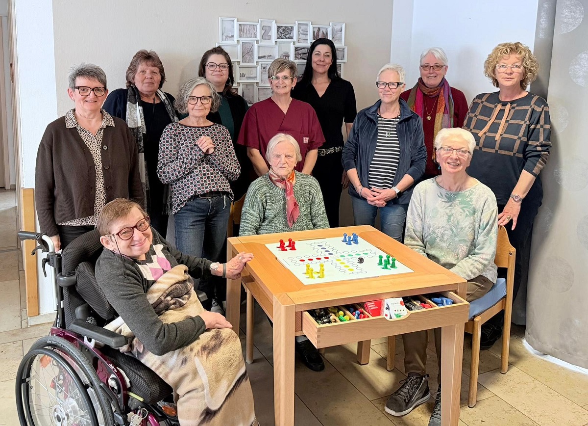 „Der WiBu-Spieletisch mit verschiedenen Brettvorlagen und extra großen Figuren ist für vier Personen geeignet und rollstuhlunterfahrbar.“, erklärte Nicole Woldert. „Auch zum Kartenspielen ist er ideal geeignet und darf jederzeit genützt werden. Er bietet Abwechslung im Alltag für unsere Bewohner und deren Besucher.“